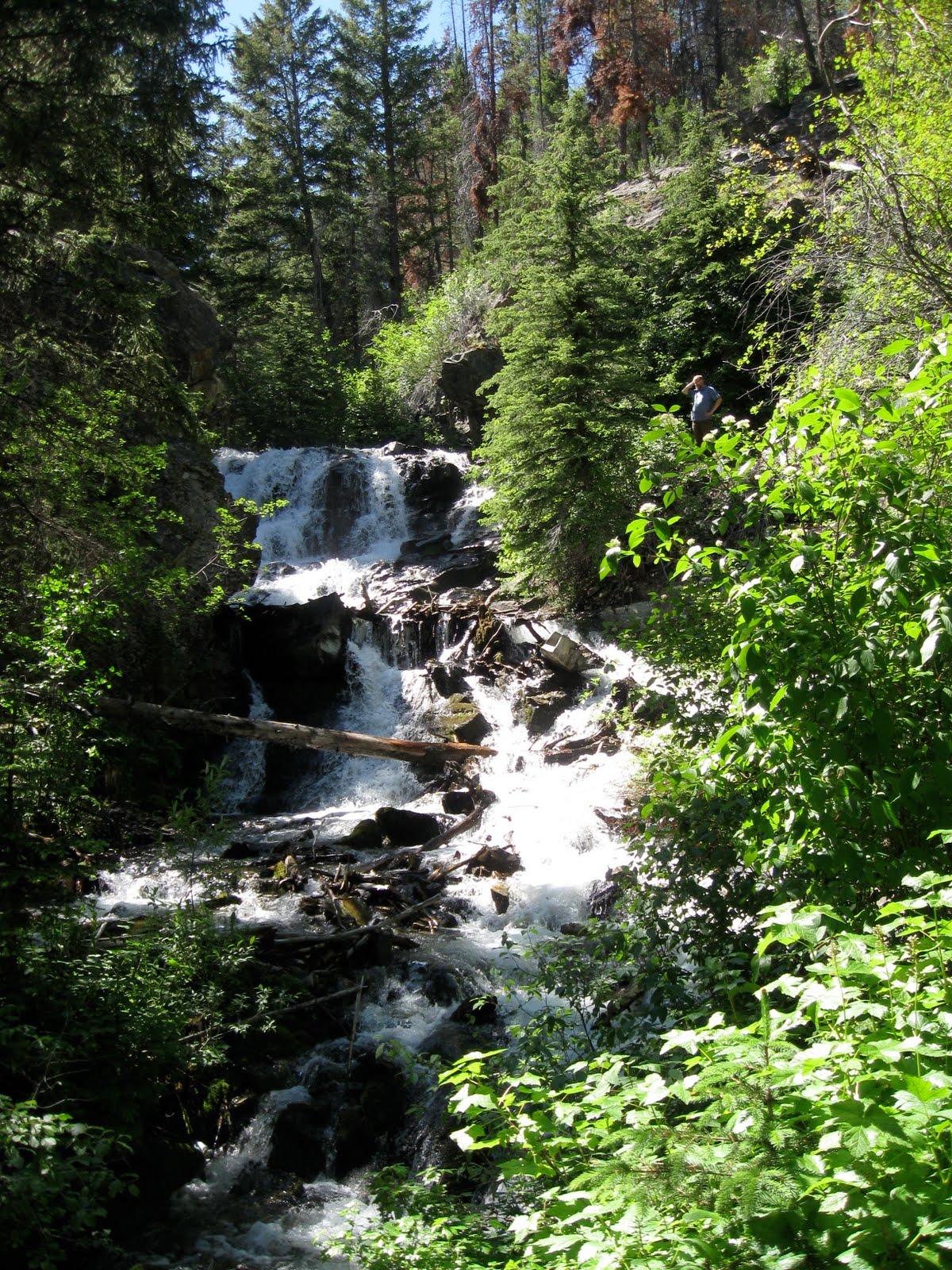 Tater was still asleep at the end of the road, so Melissa and I took separate hikes (walks, actually) to the waterfall. The main campground is the trailhead. There's another trail that goes way back to the source of Lost Creek but that kind of trek wasn't on our minds, this day anyway. The kid eventually woke up and we walked with her to the falls. She liked it in her own cautious way.