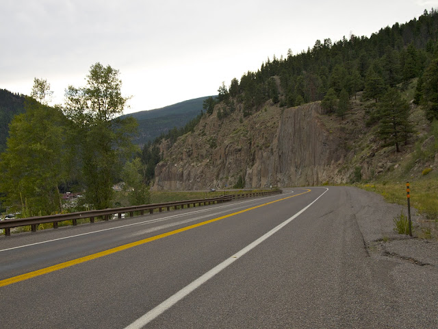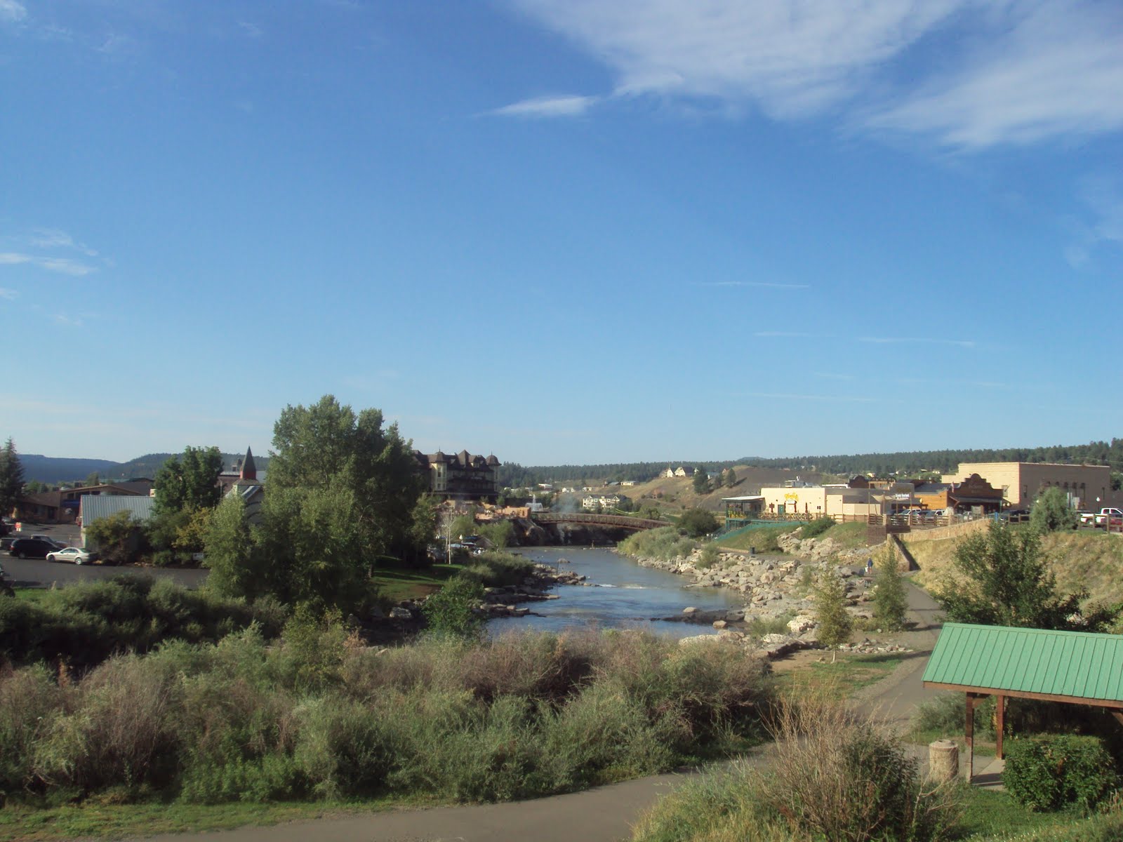 Pagosa Springs is a small town about 35 miles from the border of New Mexico. It's in the middle of the San Juan National Forest, sitting at about 7,000 feet. Wolf Creek Ski Area is nearby, and the town is named for its Hot Springs. The Ute Indians dubbed them "Pah gosah" which translates to "healing waters". You can smell the sulfur the second you hit town, and it struck me as unpleasant at first. The population is only about 2,000, but the area is a hot bed for tourists. There is something for all seasons, skiing and snowmobiling in the winter months, camping, fishing, hiking and rafting in the summer, and Elk and Deer hunting in the fall. I found the hot springs to be very inviting on a cool summer morning. I was able to slide on my flip-flops, hop out of the bus, and head into town to find the first manhole that had that hot stream rising from it. These springs are great for warming your feet.